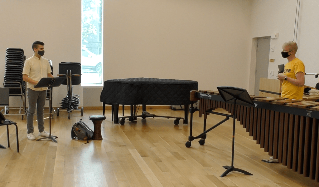 On October 19th Alex presented a masterclass to the percussion studio at the University of Missouri in Columbia, MO. There he talked with students about music for percussion and voice, previewed his upcoming 2021 PASIC performance of Rania Chrysostomou’s Τίλλειν, and worked with a graduate student on a marimba solo for his upcoming recital.