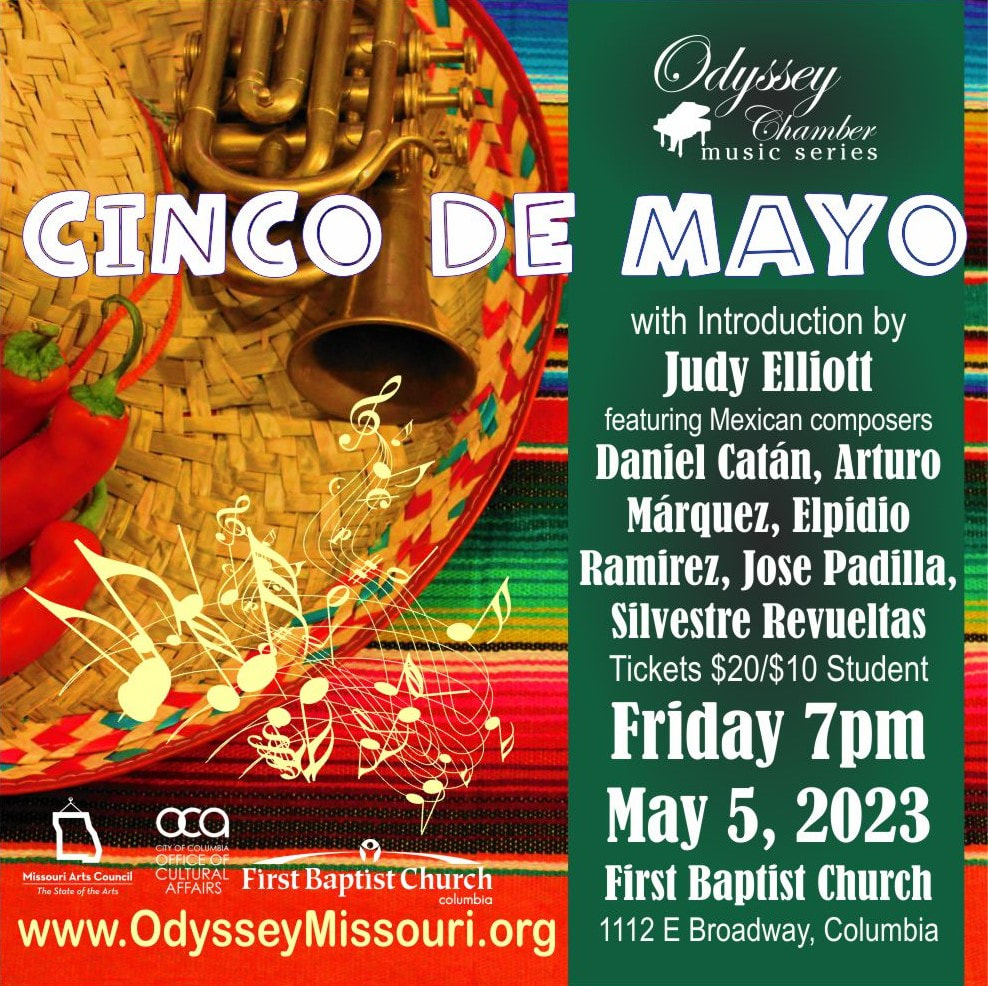 | 05.23.23 | Odyssey Chamber Music Series Cinco de Mayo Concert First Baptist Church – Columbia, MO 7:00 pm ![]() |